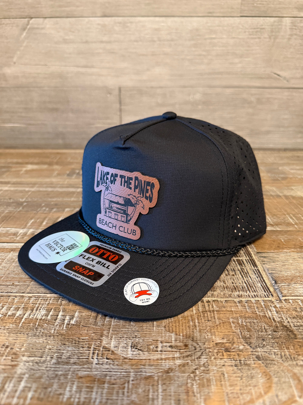 Show your Lake of the Pines pride with this stylish cap featuring a detailed laser-engraved Beach Club leatherette patch. The olive front paired with a black mesh back creates a clean, outdoor-ready look that's perfect for lake days, golf cart rides, or everyday we